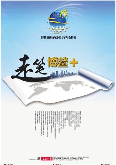 本报海口3月23日讯(记者陈彬)在全球经济发生深刻变化的大背景下,亚洲和新兴经济体发展的内外环境都有了质的变化。迎来15周年的博鳌亚洲论坛,如何放大“博鳌+”效应,为世界经济注入新活力,培育新增长点,是2016年年会的重中之重。为此,本报3月24日推出大型特刊《走笔“博鳌+”》,充分展现15年来论坛掣动海南前行、献策中国发展、促进亚洲合作、影响世界经济的不凡历程。特刊共48个版,内容丰富、视角宏大。“聚势”、“弘业”、“融域”、“绘家”四大篇章,分别从全局角度看“博鳌+”对世界亚洲中国海南的影响,从经济角度看“博鳌+”对海南各产业的影响与机遇,从区域发展角度看“博鳌+”对各市县的辐射与机会,从城市发展角度看“博鳌+”对琼海发展的拉动与机遇。特刊不仅内容翔实,版式设计也精美简洁,突出大图表运用,注重悦读体验。