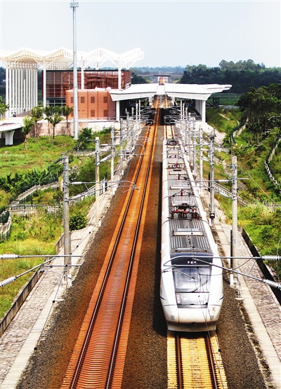 2015年底开通的海南环岛高铁不仅让岛内居民出行更便利,也向世界展现了一个更开放、更有活力的海南。 图为环岛高铁博鳌站。此次前来参加博鳌亚洲论坛2016年年会的嘉宾可乘坐高铁环游全岛,尽情领略海南风光。 本报记者 李英挺 摄
