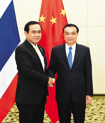 新华社三亚3月23日电 (记者潘洁 郑玮娜)国务院总理李克强23日下午在三亚会见来华出席澜沧江-湄公河合作首次领导人会议及博鳌亚洲论坛2016年年会的泰国总理巴育。李克强表示,中泰亲如一家,两国领导人保持密切往来,各领域务实合作持续健康发展。中方赞赏泰方作为澜湄合作的共同主席同中方协作,引领这一新机制的建设进程。中方愿继续同各方一道,将澜湄合作打造成次区域合作的典范。
