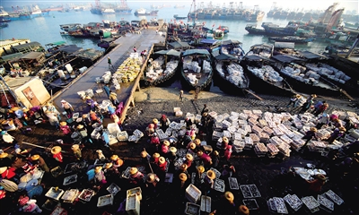 繁忙的白马井渔港。