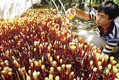 儋州高科技新产业菌草鹿角灵芝。 本报记者 苏晓杰 摄