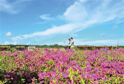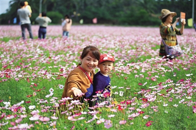 游客在龙寿洋公园畅游花海。 本报记者 张杰 摄