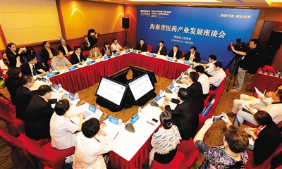 3月23日,在海南省医药产业发展座谈会上,嘉宾们为海南医药产业发展建言献策。本报记者 陈元才 摄