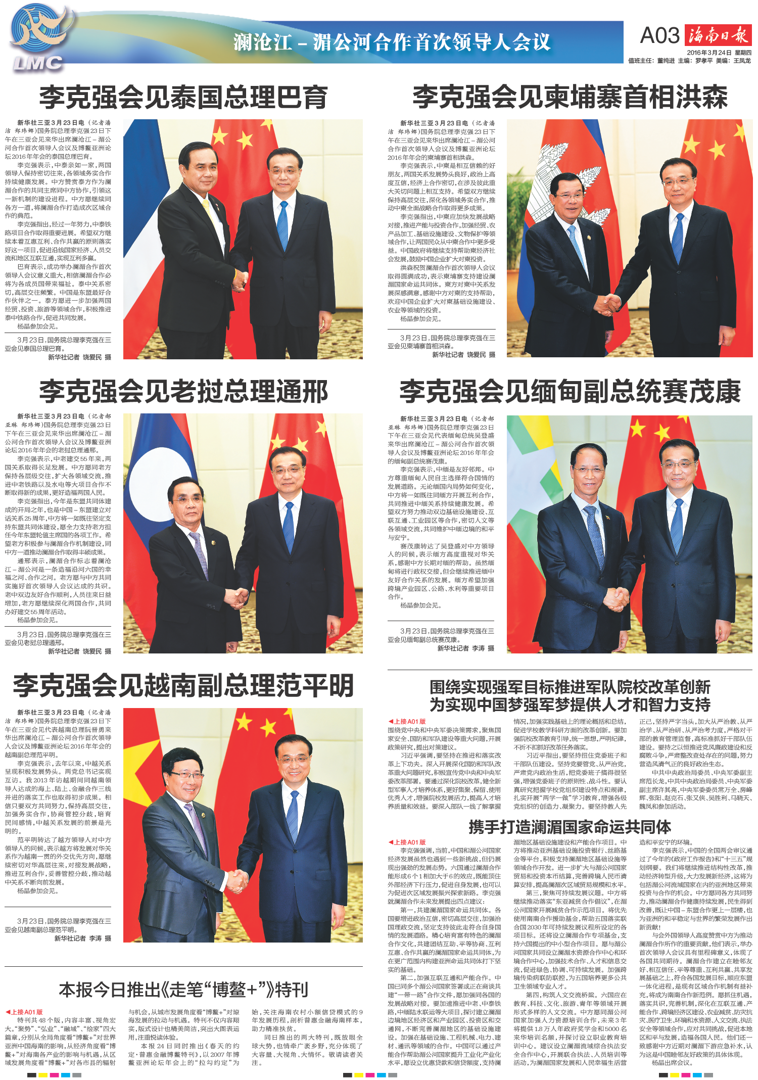 本报今日推出《走笔“博鳌+”》特刊