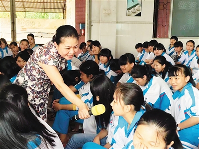 李惠君老师给中学女生做讲座。