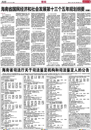 (海南省国民经济和社会发展第十三个五年规划纲要全文可在海南省发展和改革委员会网站下载)