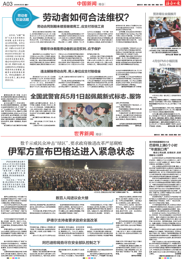 全国武警官兵5月1日起佩戴新式标志、服饰