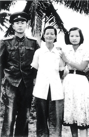 1950年代,刘文韶(左)与娘子军连连长冯增敏(中)及其女儿庞学雅合影。