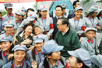 2005年11月24日,著名导演谢晋和演员祝希娟专程到琼海看望红色娘子军老战士。 陈德雄 摄