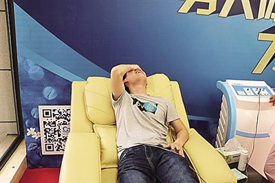 记者在现场看到,很多男士勇敢挑战。刚开始还神情自若,完全不当回事,但随着阵痛级别的提高,脸上表情慢慢变化,眉头紧皱,五官像是拧到一起。有的准爸爸挑战到6级已经汗如雨下,惨叫不止,败下阵来。还有的毅力坚强,挺到9级,但也最多忍受十几秒,便示意不再挑战。