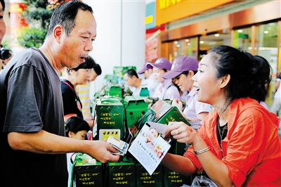 王开元介绍,这九大营销模式为:会展推介、进超市、网上销售、实体店销售、进社区设营销点、在景区码头设营销点、进机关进校园食堂、进酒店、开设形象店。