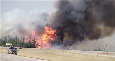 这是5月7日在加拿大艾伯塔省拍摄的火灾现场。 加拿大西部艾伯塔省的森林大火7日继续肆虐蔓延,目前过火面积已经超过2000平方公里,近10万人被疏散。 新华社记者 李保东 摄