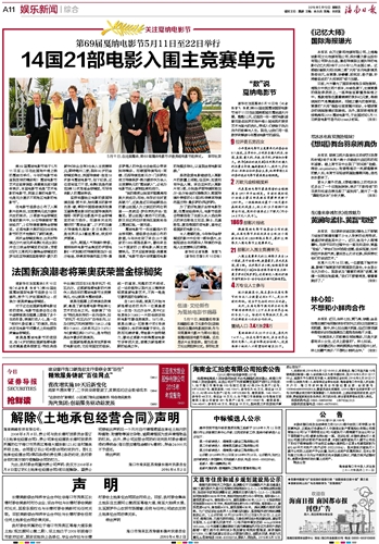 令人遗憾的是,今年争夺金棕榈奖的影片中没有一部华语片,未能延续去年两部华人导演的作品闯入主竞赛单元的辉煌。