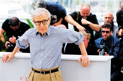 5月11日,美国著名导演和编剧伍迪·艾伦新作《社团咖啡店》在戛纳电影宫放映,作为非竞赛单元影片为第69届法国戛纳国际电影节揭幕。这也是该片全球首映。图为伍迪·艾伦出席拍照仪式。新华社发