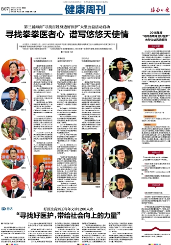 “感谢‘寻找百姓身边好医护’活动带给社会一种向上的力量。”接受记者采访时,高炳玉动情地谈起了2014年参与海南省首届“寻找百姓身边好医生”大型公益活动的感受。