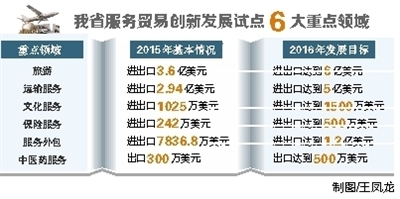 海南作为“服务业大省”,服务业占据产业结构中的“半壁江山”。日前,《海南省服务贸易创新发展试点工作方案》正式出台,明确提出海南在旅游、运输、文化服务、保险服务、服务外包、中医药服务等6大领域8个方面的创新任务。