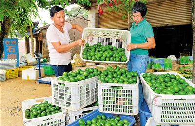 5月11日,琼海市塔洋镇里文村村民正在运销丰收的柠檬。塔洋是整个琼海市种植柠檬最早、面积最大、效益最佳的乡镇,全镇现有柠檬种植面积5600亩,价格最好的时候这里的柠檬可以卖到每斤8元钱。