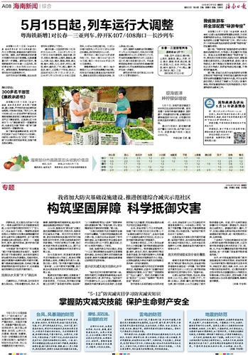 去年,我省安排72万元专项经费,创建了海口市美兰区沿江社区等12个“全国综合减灾示范社区”,全省共创建57个全国综合减灾示范社区,社会公众防灾减灾意识和能力明显提升。
