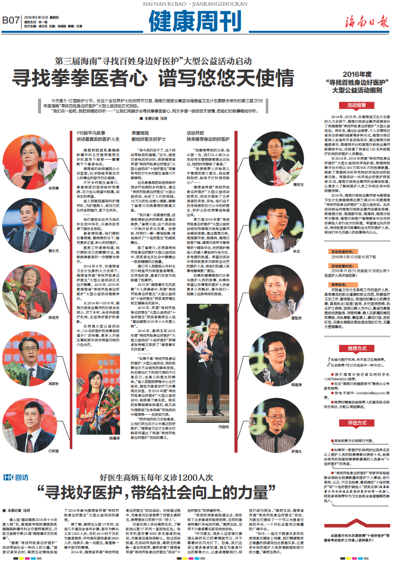 2016年度“寻找百姓身边好医护”大型公益活动细则