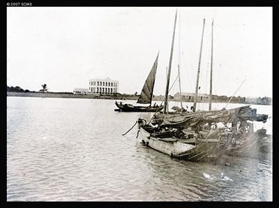 清末外国传教士拍到海甸溪上舟楫往来的景象。