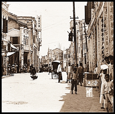 80年前,美国人镜头下的海口骑楼老街。 海南日报记者 宋国强 翻拍