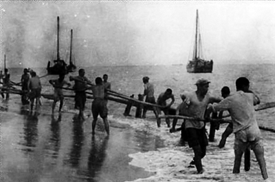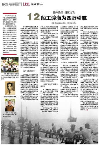 1950年4月16日晚上7点半,12名船工与解放大军一道大举渡海,以木船打兵舰,以船工为“海军”,突破了国民党军在琼州海峡上的封锁,创造了战争史上的奇迹,第二天下午登陆海南岛。此后,四野劲旅以破竹之势,于5月1日解放海南全岛。