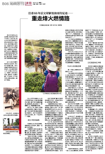 他们从广东、河南、北京等全国各地赶来,沿着66年前父辈(个别为亲历者)解放海南的烽火路前行。他们与生俱来的红色记忆深处,有一个名字叫——海南。