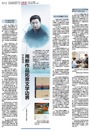 5月10日,在海南琼台师院报告厅,阿来自我打趣道,“我可不是只会写小说,上个月刚获过‘朱自清散文奖’,这也算是中国散文界的最高奖了”。