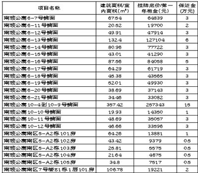 受委托,按现状分别公开招租海口市正义路5号南玻公寓16间铺面和南区6套公寓房,详见下表:1、本项目采用网络动态报价方式交易,意向承租方取得竞租资格后即可进行自由报价,每个标的铺面限时报价开始时间详见交易所网站公告。