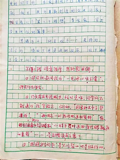 毕业前的最后一篇作文,我的题目是《一片冰心在玉壶》,写一年来自己得到来自老师、同学的种种帮助,以及内心感念。董老师给我写了大半页纸的评语。他先肯定我的作文情意浓厚,思想开阔。接下来给我三点建议。其实,董老师心里也惦记着高考,只是他不愿意我们的作文训练,因为高考而变得机械、枯燥,更不愿意我们为应试写作文,凭空想象,而失去真情实感。读董老师的作文评语真的非常享受,总是从他恳切而幽默的语言中悟出很多很多。那呕心沥血的点拨与交流,尽管隔着几十年的时间,每读一次都会在内心激起深深的敬意与感动。