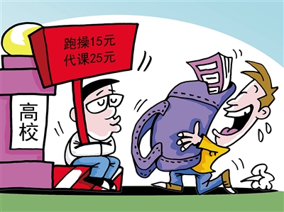 在课堂上替“雇主”喊一次“到”就可轻松赚到几十元!高校如今悄然兴起“替课族”。记者发现,不少成都高校也有“替课群”,替课明码标价:跑操15-20元、代课25-30元……有了明码标价“替课族”,不想上课的学生“再也不用担心被老师点名了”。掏钱雇人上课,表面上看反映出的是部分学生不拿学习当回事的任性、散漫,但更深层次来看折射出的却是我们的教育问题。学生之所以逃课,往往与所逃课程枯燥、乏味、难学到真本领有关,一些教师、学校不自找原因,反而一味通过点名等手段,将学生硬“绑”在课堂上。倘若部分高校、教师仍一如既往,不在教学内容、教学手段上与时俱进,那么,势必会有越来越多的“替课族”出现。这正是: