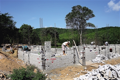 5月5日,在位于白沙南开乡青年农场十队的道银、坡告村的新址上,安置房正在建设中。