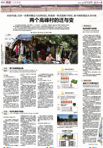 在白沙黎族自治县的地图上,有两个高峰村,一个位于南开乡,一个位于荣邦乡。相隔近百公里的这两个高峰村,同根同源,村民原本都生活在鹦哥岭自然保护区腹地的高峰岭上。上世纪七十年代的一次整村搬迁扶贫与自然回迁,使它们一分为二,形成了两个村落。数十年过去,南开乡高峰村的村民绝大多数仍生活在贫困之中,部分自然村再次面临整村搬迁。荣邦乡高峰村有2/3村民已脱贫致富,但由于土地少等原因,仍有不少村民生活在贫困之中。在当前的扶贫搬迁工作中,我省该如何使村民在搬迁后能够真正脱贫致富?两个高峰村的变迁史,值得我们借鉴和深思。