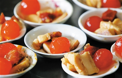 儋州禾丰五姐妹粽子有限公司包粽子的馅料。 舒晓 摄