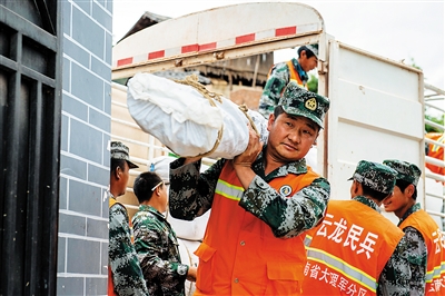 5月18日,救援人员在云龙县长新乡新塘完小搬运救灾物资。 新华社记者 胡超 摄