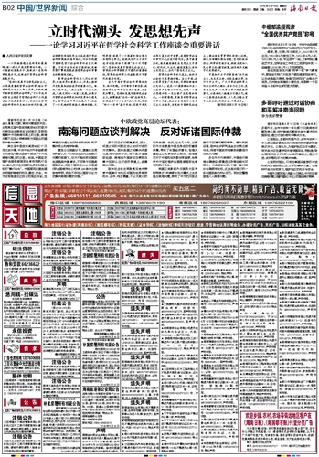 第五届中欧政党高层论坛17日在北京开幕,中共中央对外联络部部长宋涛在开幕式致辞中阐述了中方在南海问题上的立场。他说,中国坚定维护各国根据国际法享有的航行自由,坚决反对违反国际法损害别国主权的“横行自由”。中国愿同东盟各国共同维护南海的和平、稳定、安全。中方主张根据双边协议和地区共识,当事国双方通过友好协商和谈判,和平解决领土和海洋争端。