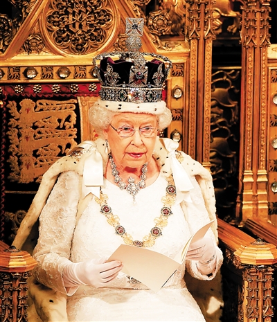 5月18日,在英国伦敦威斯敏斯特宫,英国女王伊丽莎白二世在新一届议会开幕仪式上发表讲话。 当天,新一届英国议会在伦敦威斯敏斯特宫开幕,英国女王伊丽莎白二世发表讲话。 新华社/路透