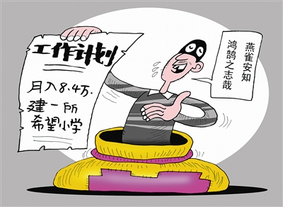 每月赚8.4万;每天赚2800元,一定要节约,给我弟买一辆车……5月13日,重庆江北石门派出所抓获一名入室盗窃的小偷,在其出租屋墙上,赫然发现了小偷的“励志工作计划”。这个小偷,真可谓偷得兢兢业业,偷得雄心壮志,也难怪有网友调侃“没有人生目标的小偷不是好小偷”。只可惜如此雄心壮志,却是建立在侵犯别人财产和利益的基础之上,如此兢兢业业,却难掩其好逸恶劳的本性。梁上君子须谨记,人生所得绝非轻而易举,必须勤勤恳恳,倘若一味贪图不劳而获,迟早遭受牢狱之灾。正像网友所言,“卿本佳人”缘何为贼,误了天分,误了人生。这正是: