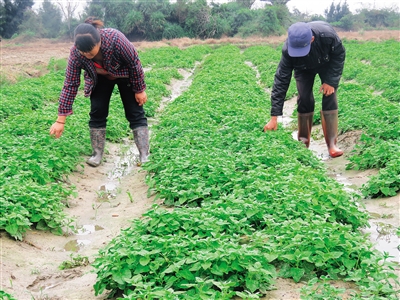 5月18日,在文昌市铺前镇潭榄村,一片距离海边仅40米的农田,因海水倒灌,表层盐分达到2.8%,种不了农作物而撂荒。但是,有一种蔬菜却在这片盐荒地上生长旺盛,叶片绿油油的,在太阳照射下反射光线,就像冰晶一样。摘下一片叶子,放进嘴里嚼一嚼,咸味刺激着味蕾。