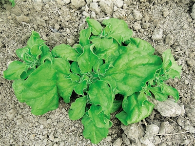 据介绍,冰菜苗期为40天,移栽到耕地后,25天到30天就可以采摘,45天进入生产期,一茬可以采3个月。一亩地种植3000株到3500株,每株每茬可产2斤,由于盐分高,没有病虫害,冰菜种植几乎不用农药。