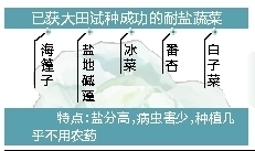 据介绍,热科院生物技术研究所对海南滨海滩涂植物资源进行了调查,通过耐盐性评价,筛选出了一批具有开发价值的本土耐盐蔬菜植物资源如节藜、海篷子、番杏、马齿苋、刺苋等。结合国内引种试种,收集保存了一批适应于热区栽培的耐盐蔬菜种质资源。经过科研人员两年多的努力,海篷子、盐地碱蓬、冰菜、番杏、白子菜已获得大田试种成功,尤其番杏和冰菜目前已少量进入海口市场。