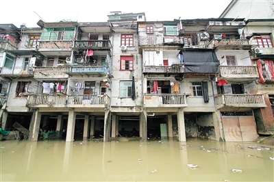 5月20日,福建顺昌江滨路一幢居民住宅底层被洪水浸泡。 5月19日开始,福建省西北部地区遭遇强降雨天气,致闽江支流富屯溪发生超警戒水位洪水,沿途一些县市的低洼地带被淹。据福建省水文水资源勘测局洋口水文站监测,截至20日晚19时,福建顺昌县境内的富屯溪水位近119米,超警戒水位近2米。 新华社发