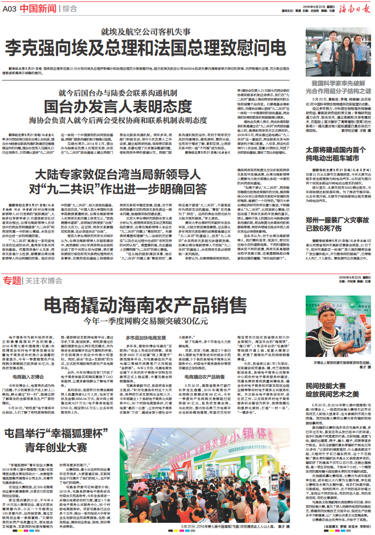 大陆专家敦促台湾当局新领导人 对“九二共识”作出进一步明确回答
