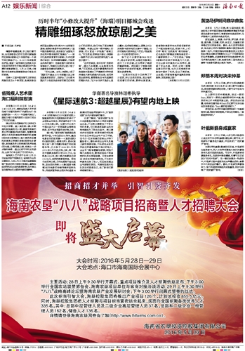 本报海口5月22日讯 (记者卫小林)好莱坞科幻大片《星际迷航3:超越星辰》昨天在美国洛杉矶举行了全球粉丝见面会,同时宣布将于7月22日在北美上映。记者今天从该片中国出品方之一的阿里影业海南站获悉,该片完全有望引进内地上映。据介绍,“星际迷航”是美国经典影视作品,今年已诞生50周年,重启电影系列的前两集——《星际迷航》和《星际迷航2:暗黑无界》,都由《星球大战7:原力觉醒》导演艾布拉姆斯执导,已分别于2009年5月和2013年5月引进内地上映,第一部在中国票房虽然只有5855万元,但那是2009年,第二部内地票房达到3.53亿元,说明两部都很卖座。即将引进的第三部,艾布拉姆斯只担任监制,改由因执导第3-6集《速度与激情》系列电影的华裔导演林诣彬执导,相信新邀导演会把执导《速度与激情》时的经验带到新片中,为“星际迷航”系列片增添新的看点。