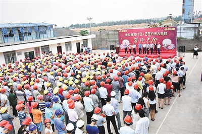 盛夏骄阳迎难上,百万“雄师”勇争先。5月23日,在距离海口喜盈门项目开业的最后冲刺之际,喜盈门8月26日开业大会战千人誓师大会在项目现场盛大举行。海南现代科技集团、上海喜盈门集团、海南现代美居投资有限公司、海口喜盈门经营管理有限公司中高层管理者,以及海南现代建筑工程有限公司、海南现代工匠装饰工程有限公司中高层管理者和奋战在一线的建筑工人千余人齐聚一堂,震撼誓师。大会上,现代建筑总经理谢晋漠宣读了《关于颁发喜盈门8·26开业大会战纲要》,通过对宣传要求、目标分解、组织结构及纪律要求等7个方面,详细解读了大会战各项要求,为此次作战布置章法。