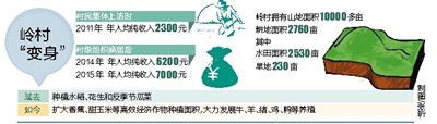 岭村人的收入也芝麻开花节节高,据统计,全村人均纯收入在2014年达到了6200元,2015年达到7000元。