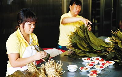 经过七八个小时的熬煮,粽子终于出锅了,望眼欲穿的人们七手八脚地将粽子捞出来。轻解粽衣,浸染上粽叶绿色的糯米散发着诱人的清香,轻咬一口,满嘴尽是肉和蛋黄的香甜味儿。黏甜香醇的粽子,带给人们的不仅是味觉上的享受,也容易引起对传统文化的黏稠思绪。因为粽子,孩子们对端午有了别样的期待;因为粽子,家人团聚变得理所当然;因为粽子,思乡的游子有了可靠的慰藉。