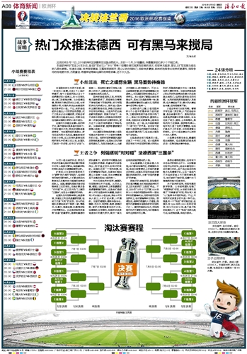扩军后2016欧洲杯虽然有不少“新贵”和久违的“老面孔”,但谈到有可能夺冠的球队,人们都会把目光聚焦在几支整体实力超强的老牌劲旅身上。法国、德国和西班牙是夺冠赔率前三位的球队,在淘汰赛多场“对对碰”中,这三支大热门上演的“三国杀”,注定会占据最多的戏码。