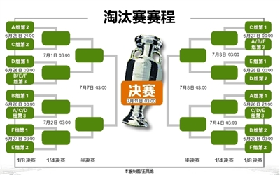 16支小组出线的队伍,按自己的名次在事先排好的淘汰赛对阵表中对号入座捉对厮杀,能连赢四轮的球队将成为王者捧起德劳内杯。