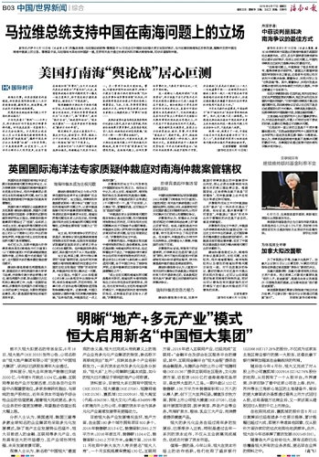 分析人士认为,美国通用、韩国三星等多数全球知名的企业集团均采取多元化发展模式。除了地产主业发展势头迅猛外,恒大目前进入的金融、互联网等多元产业,也均具有巨大的市场潜力,且产业间协同性强,未来发展前景可期。